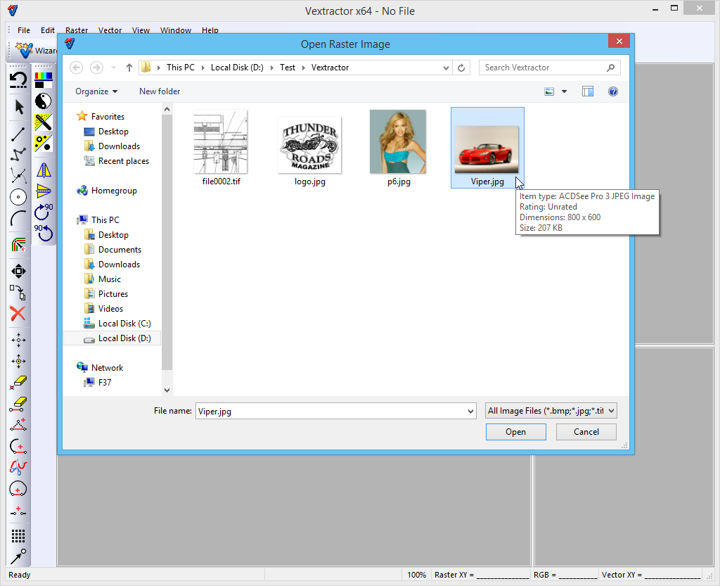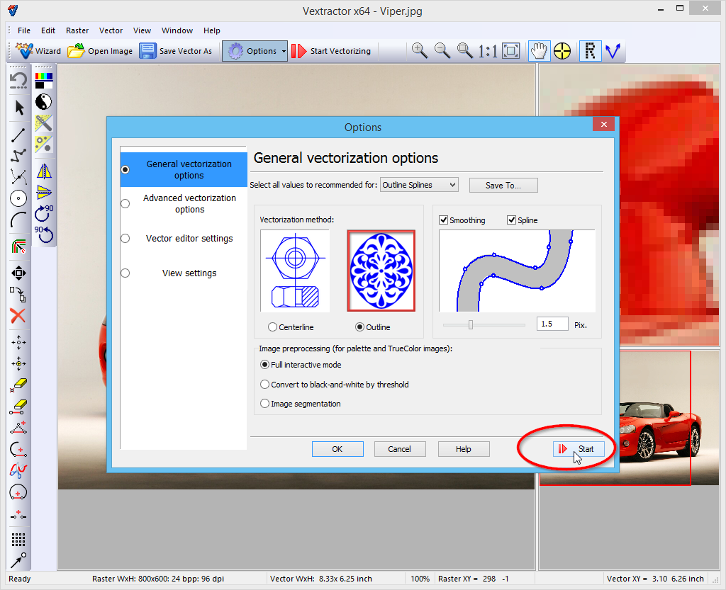 Start vectorizer program Load photo image