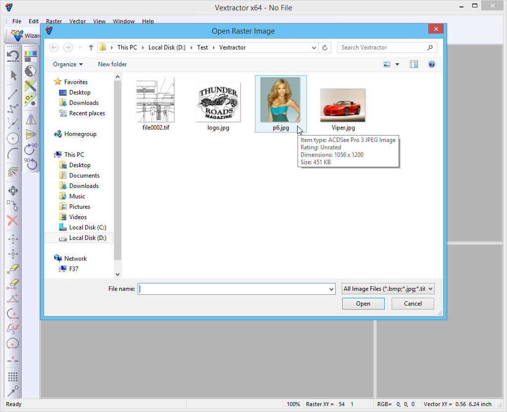 2. Choose a raster file for opening.